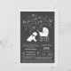 Include the big brother or sister fur baby in the celebration with this adorable Shar-Pei dog baby shower design! Perfect for a puppy lover with a baby on the way. The Shar Pei is next to an adorable vintage carriage. The chalkboard grey background makes it perfect for a gender neutral or co-ed shower!