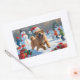 Shar Pei Running in Snow with Christmas Hat Rectangular Sticker