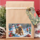 A playful Shar Pei runs happily through the snowy winter scene, wearing a festive red Christmas hat. This delightful design highlights the breed’s signature wrinkles, sturdy build, and loyal personality while capturing the warmth and joy of the holiday season. A charming winter moment full of festive cheer.