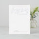 This card features title 'share a memory' in real silver foil modern calligraphy font style and details in real silver foil modern sans serif font style on white background.