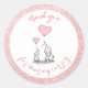 Thank your loved ones in sharing your joy with rose gold glitter sticker featuring two lovely elephants holding balloons and custom blush decorative script