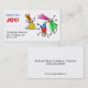 These colourful and cute business cards feature a trio of bright watercolor stick figure children running, jumping, and doing a handstand. The text at the side says "Share the JOY" in blue and bright red. Below is black text that you may easily customise to advertise your own child related business. The back of the card has three additional text fields for your customisation. Perfect for a preschool, elementary school, or day care business, among others. Joyful and fun!