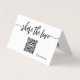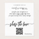 Modern Elegant Wedding Small Share the Love QR Code Tent Cards: This modern wedding hashtag qr code card features an elegant calligraphy script. It has a QR code for your invitees to scan to upload their photos to your website.