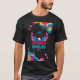 I give wanted to give this a 4 instead of a 5 because these Basic DARK T0shirts run unexpectedly SLIM or Narrow. Which is great if you do not have a potbelly, but I have a paunch. It isn't the shirt's fault that I've got a beer belly. The design and shirt itself is a quality cotton shirt. The color is more of a deep purple, but still a very pretty color. The Basic DARK T-shirts run a bit SLIMMER than the Basic Ts. The neck is a fraction narrower (or seems to be narrower) also. I'm a paunchy middle-aged woman and my neck is 12 inches (31cm) thick and the neckline fell about the same as in the photo of the man, and I had the desire to tug it a bit. So if you're a thick necked man or like loose shirts, be aware these are slimmer shirts. Once I get rid of my lockdown paunch it'll look great. The shirt washed well in cold water with no apparent bleeding. We don't have a dryer, so it hung dry. Did not shrink. Love the colors and the design. The design looks smaller on my shirt than it does on the model on-line. But still, it looks good on the shirt. The printing looks as it does on the model, just the size seems fractionally smaller. Washed garment in cold water, hung dry and design appeared unaffected.