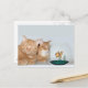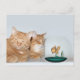 Orange tabby cats share quality time together leisurely watching a nervous goldfish in it's bowl photo postcard