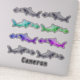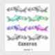Shark chasing a smaller fish pattern with an image of clay fish. Add name. Ocean Marine Animal Vinyl sticker. Vinyl reusable 8" x 8" sticker is ideal for back to school or office. Choose any of the other sizes. Up to 14" x 14". Keep as one large sticker or cut out the individual sharks and your name to add to more places.