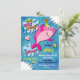 Baby Shark birthday party invitations for any age. Great for a young birthday girl. Features a friendly shark, water splashes and smaller yellow fish.