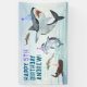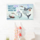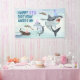 Welcome your friends and family to your shark themed birthday party with this vinyl banner! This design features a school of festive birthday sharks all wearing fun party hats! Easily edit with your birthday party information.