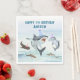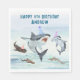 Enjoy birthday cake and ice cream with all your favorite sharks! This napkin design features a school of festive birthday sharks all wearing fun party hats! Easily edit with your birthday party information.