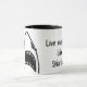 I loved designing this mug using images stored on Zazzle. Was able to choose the font for the name and uplaod a background for behind the name, and a fabulous image of a black and white horse. It came out beautifully well and I was well pleased.