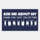 Cool shark sticker reading Ask Me About My Shark Egg Case Collection. Beneath the text is a row of adorable shark egg cases.