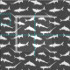 Cool soft grey fabric printed with an energetic shark pattern.