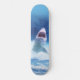 A wonderful action image of a shark immersing from the sea, jaws wide open, jumping its prey. Half of the shark is shown and the froth of the waves running down its body.