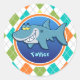 Cool, cute kids ocean, sea life, theme design with blue cartoon shark on colourful argyle pattern; orange, green, teal, and yellow pattern.