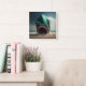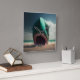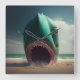 Shark sculpture on the beach square wall clock