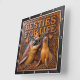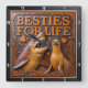 This highly dimensional square wall clock features a bold, contrasting illustration of a large brown shark with sharp teeth and a happy, smiling tan seal swimming together. The entire design is rendered in rich orange, brown, and dark gray tones, strongly suggesting a deep carved relief or Engraved Wood Look, resembling sculpted marine elements. The shark is positioned on the left with a fierce expression, while the seal is on the right with a cheerful, friendly face. They are surrounded by carved seaweed, bubbles, and three orange heart symbols. The carving style gives the entire image a strong three-dimensional, sculpted quality. The large, three-dimensional embossed text "BESTIES FOR LIFE" is carved across the top center in bold, orange lettering. The clock face features a simple clock face border with large, white, numbered tick marks (1 to 12) integrated into the outer frame. The artwork is surrounded by a thick, dark brown decorative border that resembles a black wood frame.