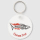 Black tribal icon of a shark with red flames. Custom background colour. Custom text on both sides.