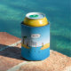 Your serve! This funny cartoon shows two castaways playing volleyball on their own personal islands with a sea of sharks waiting for one to come after a stray ball! With the caption "Your Serve." Funny and beautiful with a cool blue sea and sky.