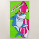 Personalised Beach Towel for Spring Break - It's SHARK Week for Spring Break! A cool Shark with is surfboard (a bite taken out for good measure ) - Fully Customisable - change all text as well as the background colour - We chose a bright lime green to set off the hot pink surfboard.. you're sure to find your spot on the beach with this baby.