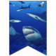 Banner flags shown with a photo print of sharks.