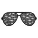 Cool black party glasses featuring all kinds of shark silhouettes, including great white shark, thresher, mako and hammerhead. Perfect for shark lovers and marine wildlife fans.