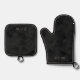 Sharp Faux Stamped Mottled Black Pot Holder Oven Mitt & Pot Holder Set