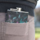 Carry your spirits in style with this sleek flask featuring a sharp geometric design. The overlapping triangles and squares hint at fangs and webs, evoking Halloween without being over-the-top. The black, orange, and silver palette adds a subtle eerie elegance to this compact accessory.