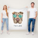 This design features a portrait of a Sharpei dog wearing teal tinted glasses.