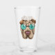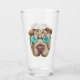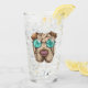 This design features a portrait of a Sharpei dog wearing teal tinted glasses.