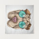 This design features a portrait of a Sharpei dog wearing teal tinted glasses.