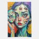 Discover the captivating depths of surrealism with this thought-provoking art print. This stunning piece tells a story of inner vision and complex identity through a woman holding a cracked mirror, her face adorned with many eyes. Conceived with the help of AI and meticulously refined by a skilled artist, this design is a powerful blend of technology and emotional expression. It’s a compelling statement piece that will inspire reflection and conversation, perfect for those who appreciate art with a deeper meaning.