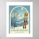 Poster from a wonderful ski resort holiday in the beautiful mountains of Shawnee Mountain Pennsylvania! This small poster features an arch with a stunning blue-grey mountain landscape and retro ski boards in an orange tribal pattern in the foreground. The rest is in a lovely light blue tone with the location lettering in a modern font. The design is a lovely combination of retro and modern, and I hope you enjoy it!