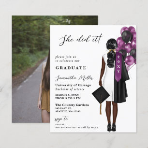 Script She Did It Minimalist Graduation Girl Photo Invitation
