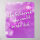 "She believed she could, so she did." Beautiful quote poster for a girl's room, or a dorm room - anywhere to inspire her to go after her dreams!