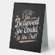 I ordered a number of items from Zazzle and all of them are wonderful. This table tent sign is more durable and professional than I expected. It’s not just a heavy cardboard tent. It has the feel and weight of durable plastic and will make a wonderful keepsake for the new mom! I highly recommend this product. .