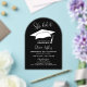 She Did It Elegant Graduation Acrylic Invitations. Scripted words "She did it" with silhouette of a graduation cap in whte set against black background. Calligraphy script wording let's everyone know that she did it. Invite friends and family to an chic black and white graduation party celebration! Templates are easy to edit with all the grad party details for celebrating your graduate.