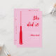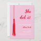 Celebrate an important milestone with our trendy and chic graduation party invitation! Featuring a feminine red and pink design, this invitation boasts a "She Did It!" text and a grad tassel, making it the perfect way to commemorate hard work and dedication. Add a personal touch by uploading a photo of the graduate, and customise the text to fit your event details. Whether it's a high school, college, or graduate school graduation, this invitation is sure to impress. Order yours today and get ready to party!