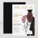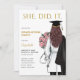 She Did It Medical School Graduation Invitation features female in lab coat with stethoscope and pink florals text reads SHE DID IT. Med school graduation party invitation for women who graduated from med school. Easy to personalise invitation for her.
