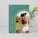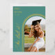 Celebrate your graduate's amazing accomplishment with this elegant She Did It arch photo graduation announcement. This stylish design features a modern arch with a customisable photo placeholder, perfect for showcasing your grad's senior portrait. The Teal colour adds a touch of sophistication. Personalise it with your graduate's name, school, class year, and a special message. Printed on high-quality card stock with real foil accents for a touch of luxury. Make your graduate shine with this beautiful and unique announcement!