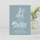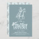 This retro and chic "she found her cowboy" bridal shower invitation features a cowboy on a horse and cowboy hat on a dusty blue background. The reverse side features a pale blue background with cactus patterns. Personalize for your needs. You can find matching products at my store.