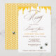 This Honey Themed bridal shower invitation features a sweet honeybee and honeycomb theme, perfect for a bride who’s found her “honey.” The left side showcases a vibrant yellow honeycomb pattern with playful bees, while the top is accented with whimsical dripping honey artwork.