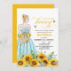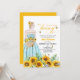 An elegant Bridal Shower design with a bride to be on a sunflower field and elegant calligraphy.
