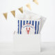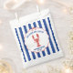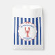 Give your bridal shower a nautical touch with these personalized paper favor bags. All the text is ready for your custom touch including the slogan at the top, the event name and the date. They feature my realistic style hand drawn illustration of a lobster in red with your text in blue. The text and graphic are set inside a hand drawn scalloped frame with a ribbon look and a bow at the top set against a blue and white nautical striped background.