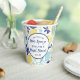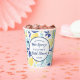 These fun and pretty paper cups are perfect for bridal showers. They feature the funny message, "She found her main squeeze" and are ready to be customised with the bride's name and date. Features a background of yellow lemons with mint green and royal blue floral and foliage accents.