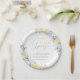 Stylish paper plates featuring watercolor lemons and soft blue florals. Perfect for a summer bridal shower, combining practicality with elegant Mediterranean-inspired design.