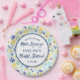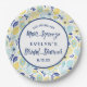 These fun and pretty paper plates are perfect for bridal showers. They feature the funny message, "She found her main squeeze" and are ready to be customised with the bride's name and date. Features a border of yellow lemons with mint green and royal blue floral and foliage accents.