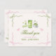 This She Found Her Perfect Matcha Bow thank you card features sweet hand-drawn matcha desserts, soft pastel tones, and charming ribbon-bow accents paired with elegant script lettering for a cute, feminine look. The whimsical coquette-style artwork and playful matcha theme make it a lovely coordinating piece for matcha bridal showers, tea-party celebrations, and pastel-girly stationery within the Perfect Matcha suite.