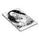A quiet figure kneels beside a pool, gathering light in her hands under a drifting sky. Rendered in delicate monochrome with fine floral details, this design captures a soft kind of sadness — reflective, not loud.