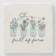 Ignite your inner strength with this bold and inspiring coaster featuring the phrase "She Is Full of Fire" with cute and vibrant flowers in vases and jars. This empowering floral artwork symbolises passion, resilience, and confidence, making it perfect for strong, fearless women who embrace their fiery spirit. Ideal for gifts, home decor, or daily motivation!