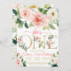 She is ONE bohemian floral girl first birthday invitation with blush pink florals and gold foil letters, personalised, Blush Roses ©